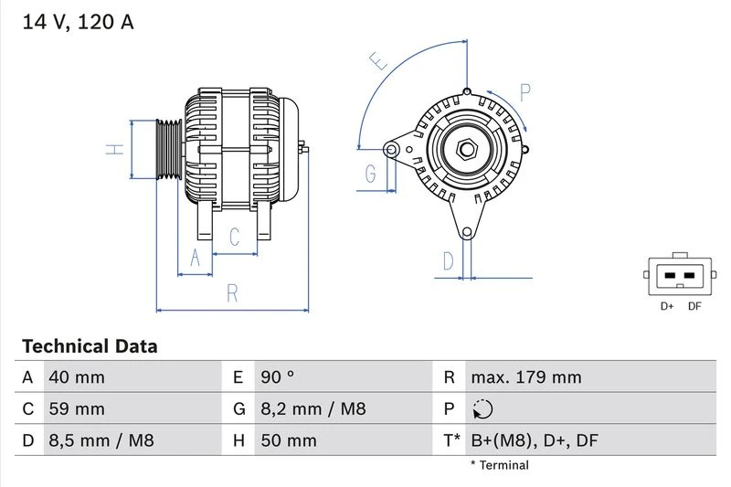 | Alternator charging current (A) | 120 |
