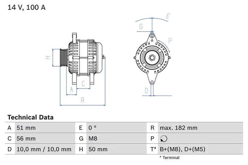 | Alternator charging current (A) | 100 |