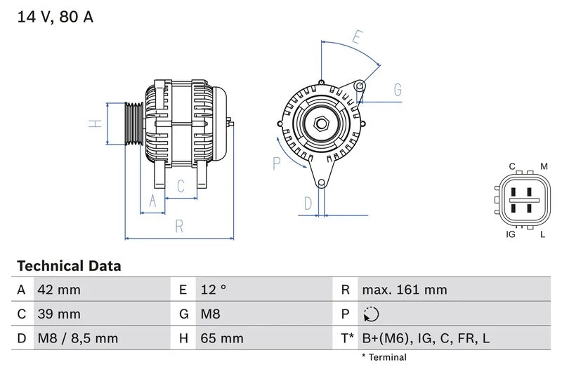 | Alternator charging current (A) | 80 |