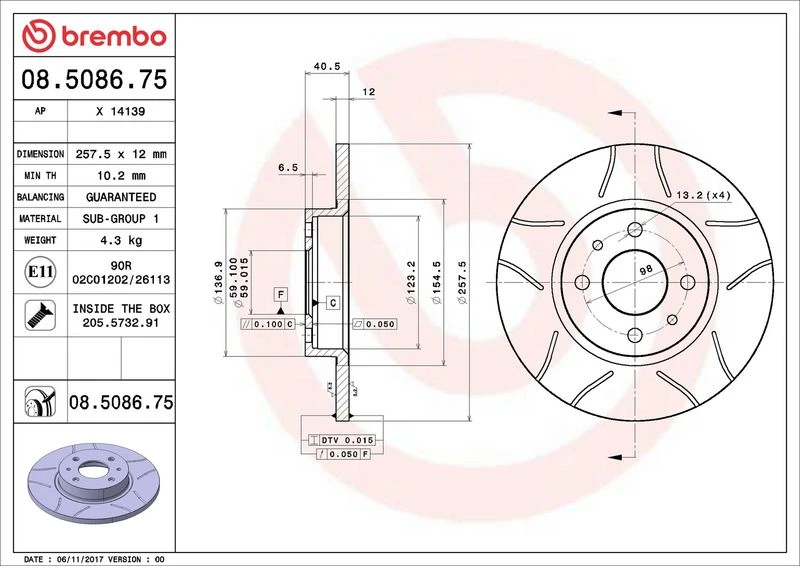 | Outer diameter (mm) | 257 |