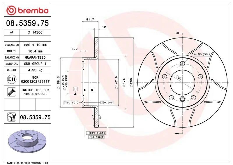 | Outer diameter (mm) | 286 |