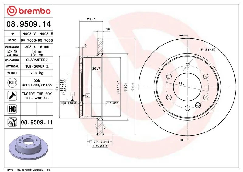 | Outer diameter (mm) | 298 |