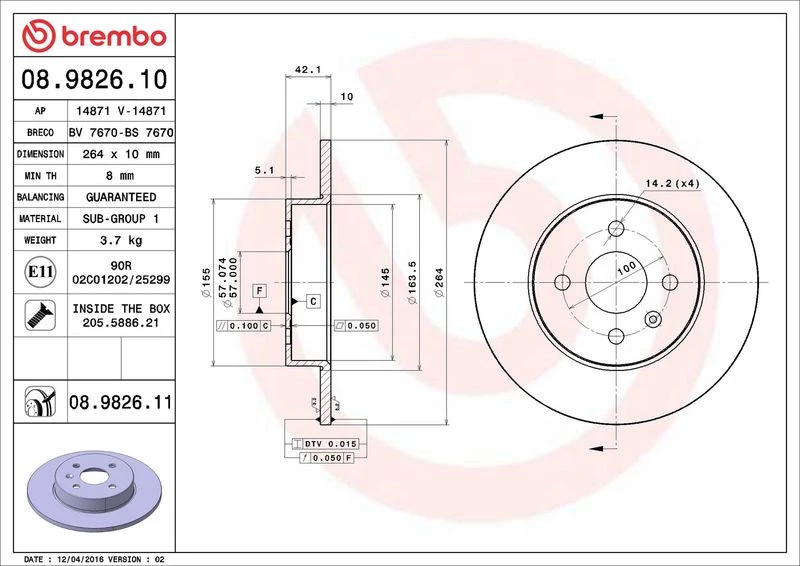 | Outer diameter (mm) | 264 |