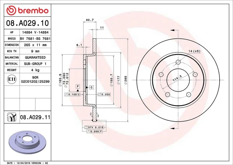 | Brake disc thickness (mm) | 11 |