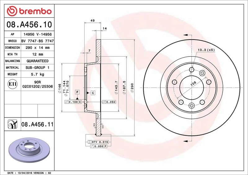 | Brake disc thickness (mm) | 14 |