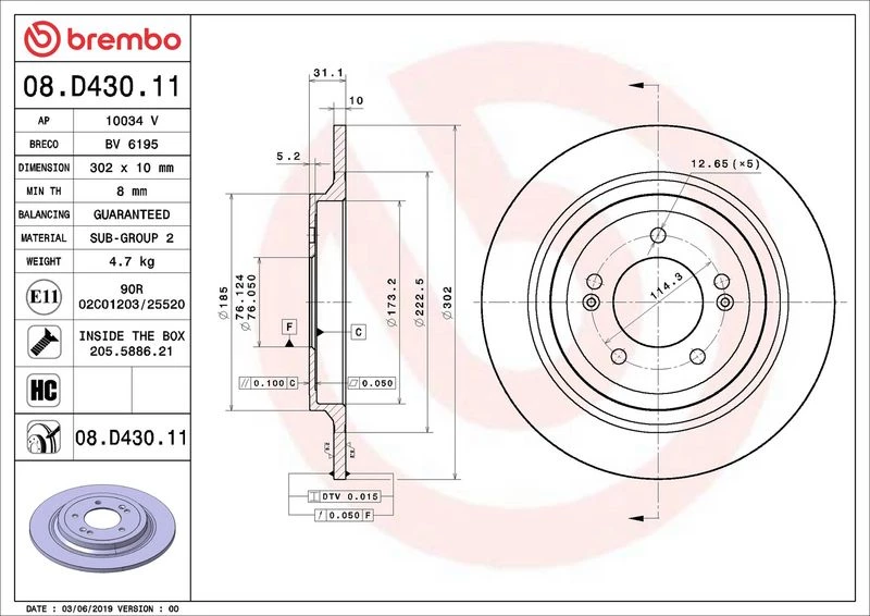 | Outer diameter (mm) | 302 |