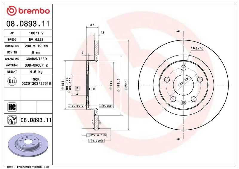 | Brake disc thickness (mm) | 12 |