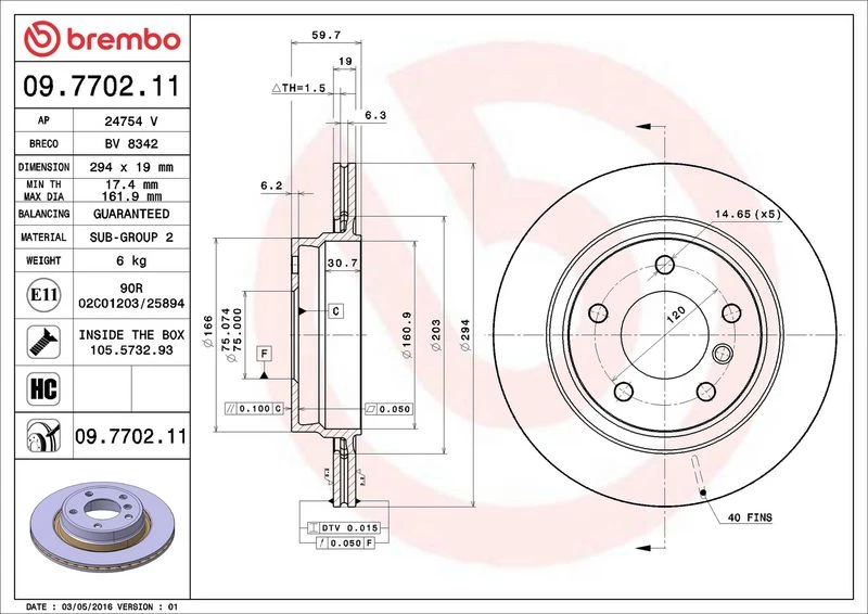 | Tightening torque (Nm) | 120 |