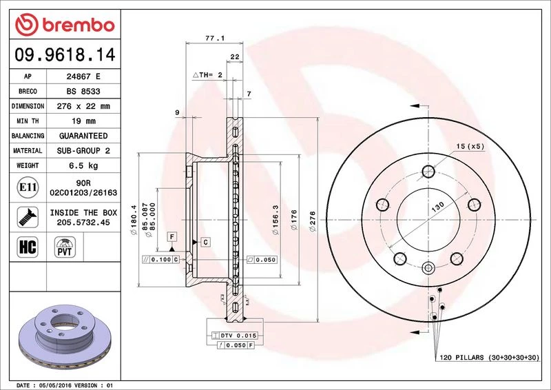 | Brake disc thickness (mm) | 22 |