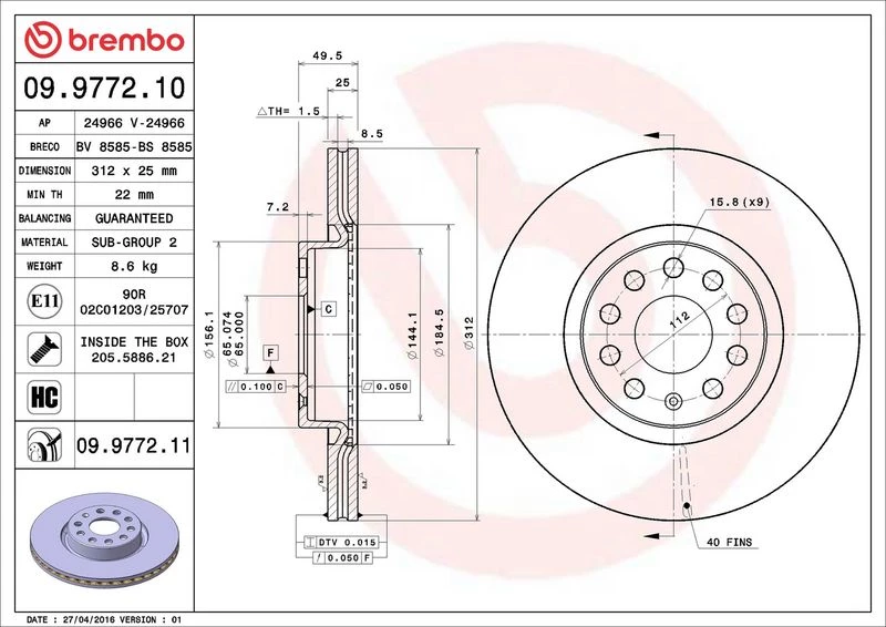 | Outer diameter (mm) | 312 |