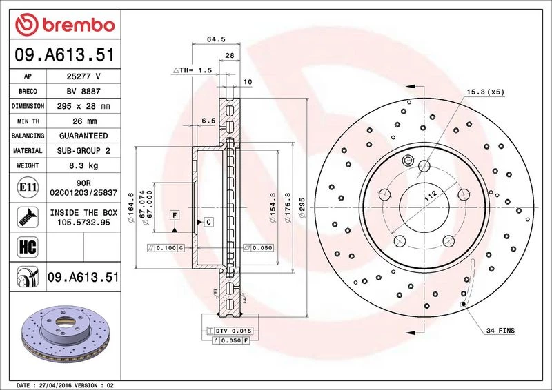 | Outer diameter (mm) | 295 |