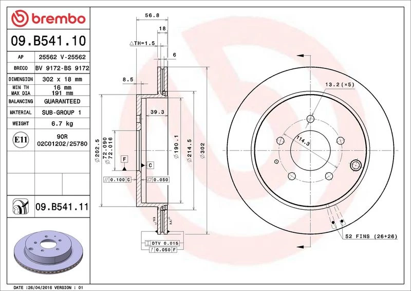 | Brake disc thickness (mm) | 18 |