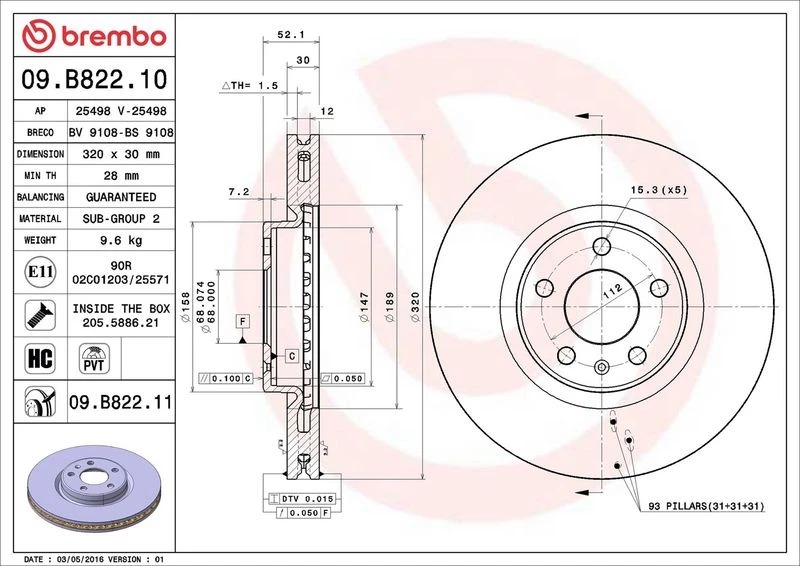 | Outer diameter (mm) | 320 |