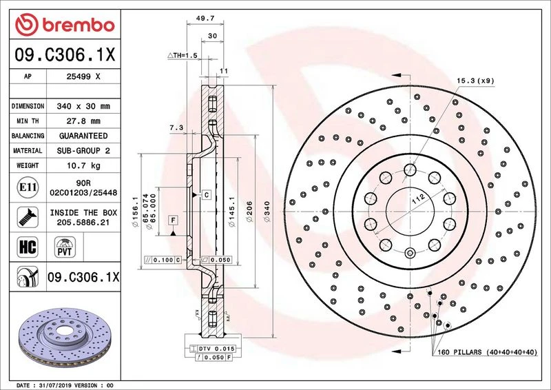 | Brake disc type | perforated/vented |