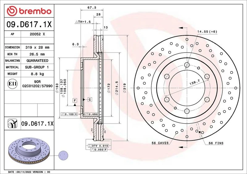 | Outer diameter (mm) | 319 |