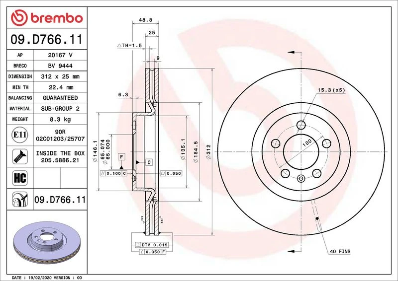 | Outer diameter (mm) | 312 |