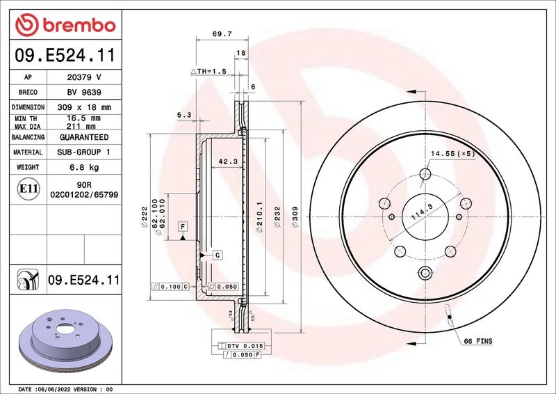 | Outer diameter (mm) | 309 |