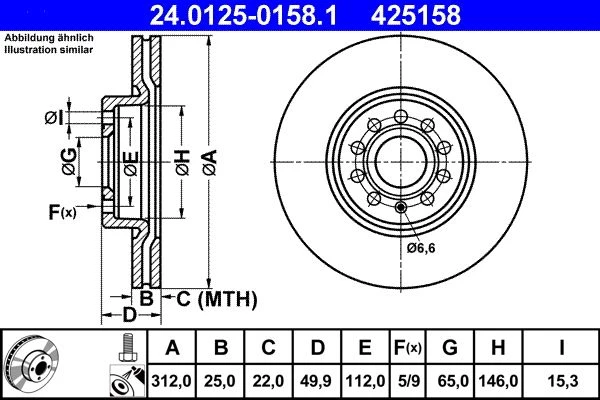 | Bolt hole circle Ø (mm) | 112.0 |