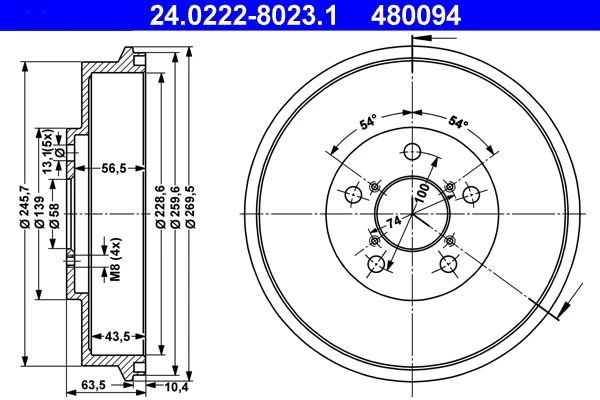 | Outer brake drum diameter (mm) | 269.5 |