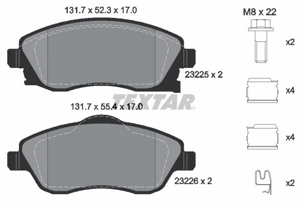 | Wear warning contact | with acoustic wear warning |