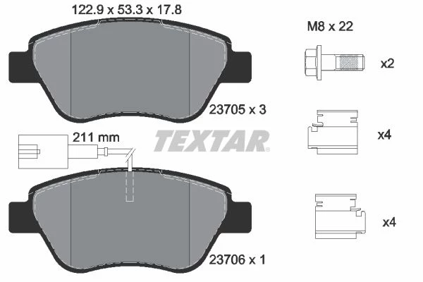 | Wear warning contact | with integrated wear warning contact |