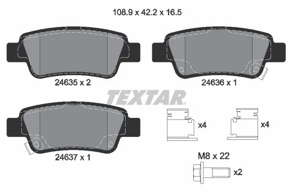 | Wear warning contact | with acoustic wear warning |