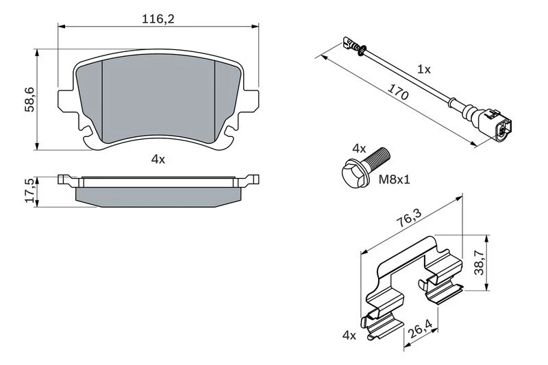 | Wear warning contact | incl. wear warning contact |
