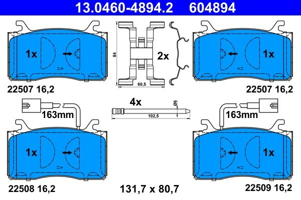 | Wear warning contact | with integrated wear warning contact |