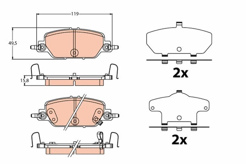 | Wear warning contact | with acoustic wear warning |