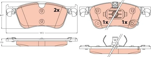 | Wear warning contact | with acoustic wear warning |