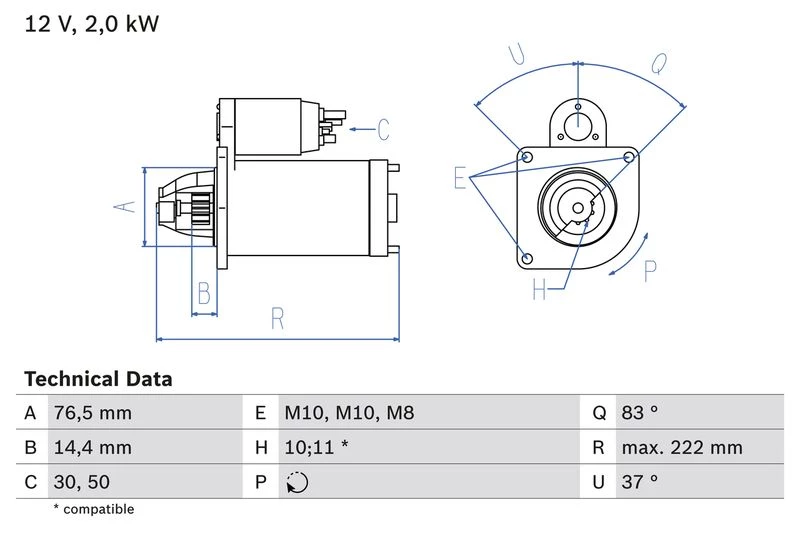 | Starter output (kW) | 2.2 |