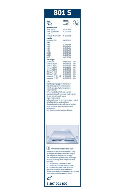 | Wiper blade type | bracket wiper blade with spoiler |