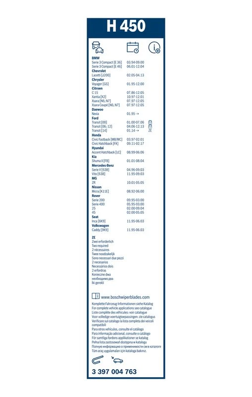 | Wiper blade type | bracket wiper blade |