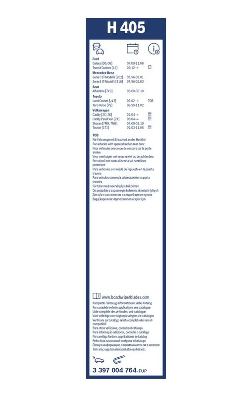| Wiper blade type | bracket wiper blade |