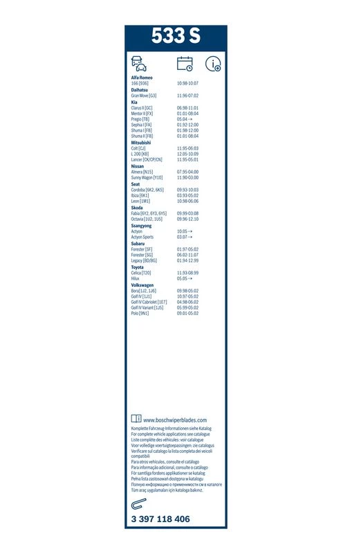 | Wiper blade type | bracket wiper blade with spoiler |